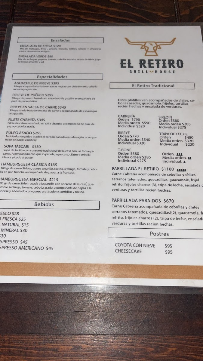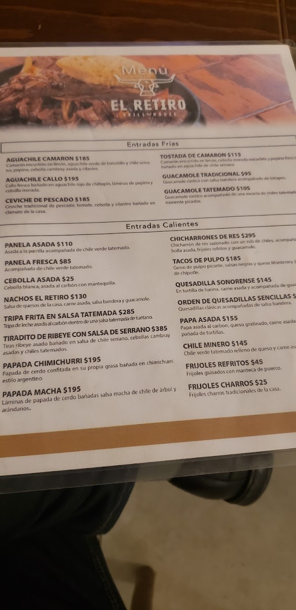 Restaurant El Retiro Menu